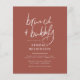 Budget & minimalistische bruiddoucheuitnodiging met handtekenstijl handschrift, elegante typografie en een aangepaste foto. We hebben gekozen voor deze boho terracotta en witte combinatie, omdat het een van onze favorieten is! Ideaal voor voorjaar-, zomer- of herfst-evenementen. Aanpassing aan florale, botanische, landelijke, schuur- of bohemienthema's. Bovenaan de kaart wordt "brunch + bubbly" met de hand geschreven in een stijl van tekenletters, met de naam van de bruid hieronder in sans-serif hoofdletters. Een lijnverdeler scheidt het van de rest van de gebeurtenisinformatie. De feestelijke details bevinden zich in een trendy combinatie van serif in kleine letters en hoofdletters. De locatie bevindt zich allemaal in een lager hoesje. De achterkant van de kaarten is voorzien van een foto van uw keuze. In wit, is de "toekomstige mrs" in het schrijven van het handtekening-stijl manuscript en de achternaam is onderaan. Dit maakt van de uitnodiging een prachtige keepslag om op koelkasten, mantelstukken, boekenplanken, koffietafels, of fotoborden te worden getoond! Bewerk de tekst eenvoudig om uniek te zijn voor uw gebeurtenis. Meer kleurvariaties zijn beschikbaar in onze winkel, of je kunt zelf kiezen om je trouwkleuren aan te bieden. Als onderdeel van de budgetselectie op Zazzle, is dit blad geen standaard nodig grootte of papierkwaliteit. Als u dit ontwerp op een uitnodigingskaart wilt, kunt u het in onze winkel vinden of de Zazzle Make Machine gebruiken om het over te brengen op het product van uw keuze. Je kunt me met alle vragen berichten, ik zal graag helpen.