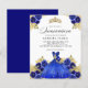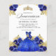 Glam Blue Dress Bloemen Waterverf 15e Quinceañera Uitnodiging