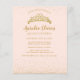 Chique sprankelende blush roze goud glitter tiara quinceanera uitnodiging