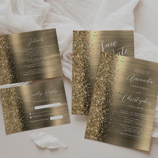 Glam Brushed Metal Glitter Gold Wedding SuiteOntworpen door Akhates Designs