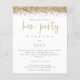 Budget Gold Glitter Weekend Hen Party Invite. Een budgetprijs voor KLEINE 4,5 x 5,6 inch. Verkrijgbaar in een SEMI-GLOSS 110 lb KAART STOCK dat de standaardoptie is (dikker voor uitnodigingen), OF een SATIN FINISH 80 lb THINER PAPER STOCK (ideaal voor behuizingen). De enveloppen zijn een facultatieve extra en zijn lichtjes groter dan de kaartgrootte. De belangrijkste kopbal Hen Partij is in een gouden vastgestelde manuscripttypografie en de rest van de tekst u kunt gemakkelijk personaliseren, evenals uw reisdetails op het omgekeerde.