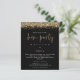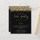 Budget Gold Glitter Weekend Hen Party Black Invite. Een budgetprijs voor KLEINE 4,5 x 5,6 inch. Verkrijgbaar in een SEMI-GLOSS 110 lb KAART STOCK dat de standaardoptie is (dikker voor uitnodigingen), OF een SATIN FINISH 80 lb THINER PAPER STOCK (ideaal voor behuizingen). De enveloppen zijn een facultatieve extra en zijn lichtjes groter dan de kaartgrootte. De belangrijkste kopbal Hen Partij is in een vastgestelde manuscripttypografie en de rest van de tekst u kunt gemakkelijk personaliseren, evenals uw reisdetails op het omgekeerde.