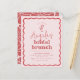 Een modern vrijgezellenfeest budget uitnodiging met een handgetekende golvende rand in een felrode kleur. De naam van de bruid is geschreven in rood handschrift met "bruidsbrunch" in groovy typografie. Er is een kleine handgetekende illustratie van een champagneglas met glinsteringen eromheen. De details van het evenement worden hieronder in trendy letters afgedrukt. De kaarten draaien om naar een hippie disco bloemenmotief uit de jaren 60 en 70. Het ontwerp is in een leuk roze en rode kleurenschema. De sjabloon tekst is online bewerkbaar, klik op "Personaliseer deze sjabloon" om te beginnen. Selecteer "klik om verder aan te passen" voor andere bewerkingen om toegang te krijgen tot Zazzle's Design Tool. Als onderdeel van de budgetselectie op Zazzle is dit blad geen standaard uitnodigingsformaat of papierkwaliteit. Als u dit ontwerp op een uitnodigingskaart wilt, kunt u het in het collectie vinden of de Zazzle Make Machine gebruiken om het over te brengen naar het product van uw keuze. Houd er rekening mee dat de kaarten worden afgedrukt zoals u ze op uw scherm ziet bij het bestellen, dus controleer zeker voor typefouten! Voel je vrij om me te berichten met eventuele vragen, ik zal graag helpen! Uitzicht het collectie dat op deze pagina is gekoppeld voor overeenkomende objecten. Blader door mijn winkel voor meer bruidsdoucheuitnodigingen.
