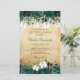 Budget Elegant Emerald Green Gold Floral Butterflies Quinceañera Quince Uitnodiging