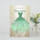 Budget Gold Green Sparkle Dress Quinceañera Quince Uitnodiging