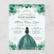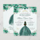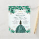 Budget Emerald Groen Goud Bloemen Prinses Tiara Kroon Quinceañera Uitnodiging