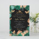 Budget Elegante Smaragd Groene Rozen Vlinders Zwart Goud Quinceañera Quince Invitation
