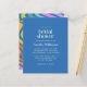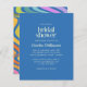 Deze levendige bruidsdouche-uitnodiging beschikt over een gedurfde kobaltblauwe voorkant met schone moderne typografie en elegante scriptdetails. De achterkant toont een speels retro streeppatroon in heldere regenboogtinten, wat een leuke en groovy twist toevoegt. Perfect voor het vieren van een stijlvolle bruid-to-be met een kleurrijke, vrolijke douche. Gedrukt op budgetvriendelijk papier, is het ideaal voor moderne, achtertuin of casual bijeenkomsten met persoonlijkheid.