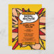 Een leuke, koele en trendy uitnodiging voor een bruiloftsfeest in stripboekstijl die de knal, zoef, boem toevoegt aan elk feest van een superheldbruid-to-be. De achterkant heeft een bijpassend patroon met stripboekstippen. Ontworpen door Thisisnotme