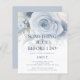 Een budget geprijsd formaat van 4,5 x 5,6" 110lbs semi-glans, vergelijkbaar in dikte met een briefkaart. Er is ÉÉN per blad. Iets blauw voordat ik Floral Vrijgezellenfeest doe. Elegante bloemstukken in zomers lichtblauw en wit, stromen vanaf de bovenkant naar beneden en vervagen achter een getinte overlay met tekst die gedeeltelijk bovenop is bedekt. Personaliseer de tekst eenvoudig aan uw eigen gegevens.