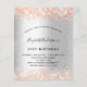 Voor een elegante 21e (of om het even welke leeftijd) verjaardagsfeestje. Een faux zilveren metalen achtergrond. Verkleurd met roos goudfaux glitter. Pas een naam en partijdetails aan en voeg deze toe. De naam wordt geschreven met een handgeschreven stijlmanuscript
