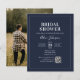 Nodig gasten uit om de aanstaande bruid te vieren met een bruidsdouche-uitnodiging die nautische elegantie uitstraalt. De voorkant toont haar naam in grillige kalligrafie, gecombineerd met een geavanceerd serif lettertype voor de details, allemaal tegen een rijke marineblauwe achtergrond - een perfecte knipoog naar een thema aan zee. Een QR-code is inbegrepen voor naadloze RSVP- en registertoegang, waardoor planning eenvoudig is voor gasten. Voeg op de achterkant een favoriete foto toe die haar unieke stijl vastlegt en een uitnodiging voltooit die zowel charmant als verfijnd is. Ideaal voor een stijlvol, nautisch geïnspireerd vrijgezellenfeest dat de liefde en de schoonheid van het zee viert.