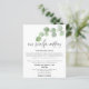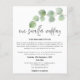 Een lagere prijs op papier van 4,5 x 5,6 inch. Enveloppen zijn een optionele extra. Voor tijden dat een sociaal afgelegen kleinere trouwceremonie noodzakelijk is en u wilt uw gasten laten weten dat u aan het downsizing bent en hen uitnodigen voor het live streamen, heeft dit hedendaagse ontwerp een elegante tak van eucalyptusbladeren bovenaan en modern, stijlvol handschrift met ons kleinere huwelijk eronder. De rest van de tekst kunt u met uw details gemakkelijk personaliseren. U kunt de coördinerende groene achtergrondkleur op de rug in een andere kleur ook veranderen als u via de Customize Verdere optie wenst.