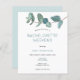 Een budgetprijs voor KLEINE 4,5 x 5,6 inch. Verkrijgbaar in een SEMI-GLOSS 110 lb KAART STOCK dat de standaardoptie is (dikker voor uitnodigingen), OF een SATIN FINISH 80 lb THINER PAPER STOCK (ideaal voor behuizingen). De enveloppen zijn een facultatieve extra en zijn lichtjes groter dan de kaartgrootte. . Een tak van elegante blauwe eucalyptusbladeren versiert de bovenkant en de stijlvolle typografie is beneden die gemakkelijk aan de details van uw Bachelorette Party wordt gepersonaliseerd. Aan de andere kant is je route die weer gemakkelijk kan worden gepersonaliseerd. U kunt de achtergrondkleuren aan beide zijden, evenals de tekst in een verschillende kleur veranderen als u dit wenst via de Klik om de optie Verdere aan te passen.