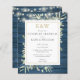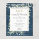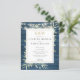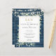 Met mooie slingers en delicate waterverf groene bladeren op een landelijke blauwe houten achtergrond, kan deze budget bruiloftsinvitaties voor koppels worden gepersonaliseerd met uw gouden monogram initiaal en speciale bruiloftsinformatie. Ontworpen door Thisisnotme
