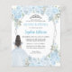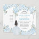Dusty Light Baby Blue Silver Grey Glitter Sparkle Floral Princess Tiara Quinceañera Uitnodiging