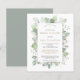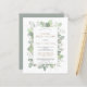 Een budgetprijs alternatief met kleinere afmetingen dan 4.5” x 5.6”. Beschikbaar op halfglans 110 lb karton, wat de standaardoptie is (dikker voor uitnodigingen), OF een satijnen afwerking 80 lb dunner papier (ideaal voor bijlagen). Enveloppen zijn een optionele extra en zijn iets groter dan de kaart. Voor tijden waarin je niet fysiek samen kunt zijn, is een virtuele bruidsdouche een goed alternatief. Dit moderne ontwerp heeft een rand van elegante waterverf saliegroen en gouden blad, rond de stijlvolle eenvoudige typografie die je gemakkelijk kunt personaliseren. Je kunt ook de tekst- en achtergrondkleuren aan beide zijden wijzigen via de optie 'Verder aanpassen'.