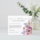 Een budgetprijs voor KLEINE 4,5 x 5,6 inch. Verkrijgbaar in een SEMI-GLOSS 110 lb KAART STOCK dat de standaardoptie is (dikker voor uitnodigingen), OF een SATIN FINISH 80 lb THINER PAPER STOCK (ideaal voor behuizingen). De enveloppen zijn een facultatieve extra en zijn lichtjes groter dan de kaartgrootte. Wanneer de omstandigheden helaas betekenen dat je je bruiloft moet uitstellen, zal dit handige briefkaart je in staat stellen je gasten te informeren. Liefde is besmettelijk wordt ingesteld in een elegant script in dusty blue bovenaan en de rest van de tekst op de voor- en achterkant die u gemakkelijk kunt personaliseren. Mooie roze en lila bloemen en blauwe bladeren zijn aan de rechterkant en een coördinerend bloemmotief is ook aan de achterkant.