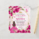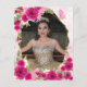 Modern Magenta Roze Blush Roze Gouden Glitter Sparkle Bloemen Roos Vlinderprinses Tiara Crown Quinceañera Foto Verjaardagsuitnodiging