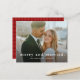 Budget Merry en Gehuwd eenvoudig type foto Kerstkaart met minimale witte bekleding typografie op de voorkant. De rug heeft een duidelijk patroon met ruimte voor uw persoonlijk bericht. Klik uitgeven knoop om dit ontwerp aan te passen.