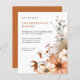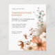 Najaargang Thanksgiving deining Dinner Invite. Een budgetvriendelijk KLEINER 4,5 x 5,6-inch alternatief. Verkrijgbaar in een SEMI GLOSS 110 lb KAART STOCK of een SATIN FINISH 80 lb THINER PAPER STOCK. Enveloppen zijn een optionele extra. Een prachtig florale en foliageontwerp in glorieuze herfstkleuren om je vrienden en familie uit te nodigen voor je Thanksgiving Dinner party. De sumptieuze botanica versieren de rechterkant en de aangepaste typografie is links, die je gemakkelijk kunt personaliseren. U kunt de tekst en achtergrondkleuren aan beide zijden ook wijzigen als u dit wenst via de optie Verdere aanpassing.