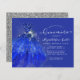 Moderne zeemacht blauw zilver Glitter Sparkle Floral Dress Quinceanera 15th Birthday Invitation