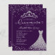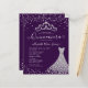Modern Glam Paars Violet Diamond Tiara Princess Glitter Confetti Sparkle 15th Birthday Quinceanera Uitnodiging