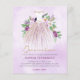 Budget Paarse gouden glitter bloemenjurk Quinceañera Invitation