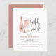 Dit moderne ontwerp is voorzien van een handgetekende illustratie van een champagnefles en twee champagneglazen in prachtige tinten roze en goud. Aan het recht verschijnt "brudale brunch"in zwarte manuscriptbrief. De naam van de bruid-to-be wordt hieronder weergegeven in plattelands hoofdsteden met de details van de douchegebeurtenis. In de linker- en rechterbovenhoeken van de onderkant zijn er faux goudstings. De kaarten keren aan een zwart afbeelding van de verftextuur tegen een witte achtergrond om. Klik op "Personaliseren" om de tekst te wijzigen. Als onderdeel van de budgetselectie op Zazzle, is dit blad geen standaard nodig grootte of papierkwaliteit. Als u dit ontwerp op een uitnodigingskaart wilt, kunt u het in onze winkel vinden of de Zazzle Make Machine gebruiken om het over te brengen op het product van uw keuze. Neem contact met me op als je vragen hebt.