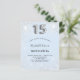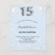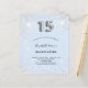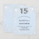 Een moderne, stijlvolle en glamoureuze uitnodiging voor het 15e verjaardagsfeest van een meisje. Een babyblauwe achtergrond, versierd met faux zilveren glitterstof. Personaliseer en voeg jouw naam en partijdetails toe. Nummer 15 wordt geschreven met een ballonstijllettertype, script.