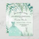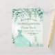 Een trendy uitnodiging voor een Quinceañera, 15e verjaardagsfeest, gaf een betoverend bosthema. Een groene waterkleurige achtergrond met fernons en eucalyptusgroen, een groene jurk. De naam wordt geschreven met een modern handgeschreven stijlmanuscript met letters. Pas je partijgegevens aan en voeg deze toe.