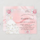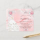 Een moderne, stijlvolle en glamoureuze uitnodiging voor een 15de verjaardag van Quinceañera. Een wazige roze satin, zijde als achtergrond, versierd met faux zilveren glitter stof, een tiara en een jurk, roze en witte bloemen. De naam wordt geschreven met een modern handgeschreven stijlmanuscript met letters. Pas je partijgegevens aan en voeg deze toe.