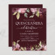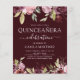 Budget Elegant and Modern Blush Pink and Burgundy Red Flowers Floral Quinceanera Celebration Party Uitnodigingen omvatten mooie en elegante scripttypografie met moderne botanische bloemen met een blote bloem en Bourgogne voor de speciale viering van de 15e verjaardag.