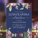 Budget Elegant and Modern Blush Pink and Burgundy Red Flowers Floral on Navy Blue Background Quinceanera Celebration Party Uitnodigingen zijn mooie en elegante scripttypografie met moderne botanische bloemen met een blote rode bloem en Bourgogne voor de speciale viering van de 15e verjaardag.