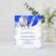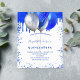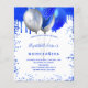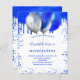 Een witte achtergrond. Gedecorreerd met royal blue faux glitter druipt verf druppelend blik, sparkles. Royal blue en faux zilveren ballonnen. Pas een naam en partijdetails aan en voeg deze toe. De naam wordt geschreven met een handgeschreven stijlmanuscript met letters.