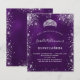 Voor een elegant Quinceañera, 15e verjaardag. Een paarse achtergrondkleur, de paarse kleur is ongelijk. Gedemoreerd met faux zilveren glitterstof en een tiara, kroon. Geef een persoonlijke naam, leeftijd en partijgegevens op en voeg deze toe. De naam wordt geschreven met een handgeschreven stijlmanuscript