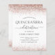 Budget Quinceanera Roos Gold Glitter Uitnodiging