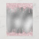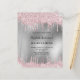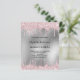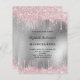 Een moderne, stijlvolle en glamoureuze uitnodiging voor een 15de verjaardag van Quinceañera. Een faux zilveren metalen achtergrond met een elegante roze faux glitter-druppelaar, een verfdruppelaar. De naam wordt geschreven met een zwart modern handgeschreven stijlmanuscript met letters. Geef een persoonlijke naam, leeftijd en partijgegevens op en voeg deze toe.