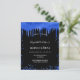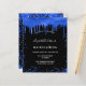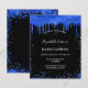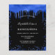 Een meisje en trendy Quinceañera, 15e verjaardag uitnodiging. Aan de voorzijde: een zwarte achtergrond. Gedecorreerd met royal blue faux glitter druppels, verfdruppelend uiterlijk. Pas een naam en partijdetails aan en voeg deze toe. De naam wordt geschreven met een handgeschreven stijlmanuscript met letters.