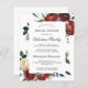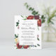 Moderne, roodbruine en witte rozen worden in donkergroene, moderne botanische foliën genaaid. Het open florale lijst omringt je vrijgezellenfeest info. Op de achterkant van de uitnodiging staat een coördinerende boeket.