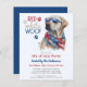 Viel de Dag van de Onafhankelijkheid met onze patriottische uitnodigingen van de partij van 4 juli met een charmante, handbeschilderde waterverf van een gele labrador. Ideaal voor hondenliefhebbers, dit kunstige ontwerp nodigt familie en vrienden uit om mee te doen aan de feestelijkheden met een BBQ, voedsel, plezier en vuurwerk. Bekijk ons collectie voor het aanpassen van patriottische geschenken van 4 juli, partijgunsten, en leveringen. COPYRIGHT © 2021 Judy Burrows, Black Dog Art - Alle rechten voorbehouden. Red White Wof Patriotic Labrador Dog 4 juli Uitnodiging