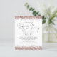 BELANGRIJKE OPMERKING: er zijn twee papieren opties waaruit u kunt kiezen voor deze grootte (4,5 x 5,6 inch) in het begrotingsbereik. Voor dit product zou ik de halfglansmachine, een 110 gsm-kaartvoorraad, sterk willen aanbevelen, vergelijkbaar in dikte met een briefkaart. De Satin-optie is een veel dunner papier van 80 gr/m². Het gebrek wordt geplaatst aan semi-gloss. OOK is er ÉÉN uitnodiging per blad. Een vastgestelde handgeschreven stijl voor Boots & Bling en de rest van de tekst u kunt gemakkelijk personaliseren. Faux glitter grenst in roos goud aan de boven- en onderkant aan beide zijden.