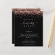 Roos Gold Glitter Hen Weekend Black Itinerary Invite Een budgetprijs voor KLEINE 4,5 x 5,6 inch. Verkrijgbaar in een SEMI-GLOSS 110 lb KAART STOCK dat de standaardoptie is (dikker voor uitnodigingen), OF een SATIN FINISH 80 lb THINER PAPER STOCK (ideaal voor behuizingen). De enveloppen zijn een facultatieve extra en zijn lichtjes groter dan de kaartgrootte. De stijl van Glitzy voor uw hen doet weekend met een grens van roos gouden faux glitter aan beide kanten bij de bovenkant, en de Partij van de Spel in een handschrift stijlmanuscript op een klassieke zwarte achtergrond. Pas de tekst eenvoudig aan uw eigen details aan. U kunt de tekst en achtergrondkleuren ook wijzigen via de optie Verdere aanpassing aanpassen als u dat wenst.