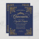 Modern Classic Elegant Glam Navy Blue Royal Blue Goud Lijst Prinses Tiara 15e Verjaardag Quinceanera Invitation