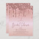 Een budgetvriendelijk alternatief van papier. Enveloppen zijn een optionele extra. Glam nep Glitter druppels in roze goud omzomen de bovenrand aan beide zijden. Bruidsfeest is geschreven in een modern stijlvol schrift in een bijpassende tint en de rest van de tekst kun je gemakkelijk personaliseren.