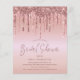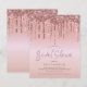 Een budgetvriendelijk alternatief van papier. Enveloppen zijn een optionele extra. Glamoureuze nep-glitterdruppels in roze goud omlijsten de bovenrand aan beide zijden. Bruidsmeisje is geschreven in een modern stijlvol script in een bijpassende kleur en de rest van de tekst kun je gemakkelijk personaliseren.