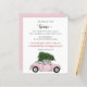 Budget Roze kerstboomwagen We hebben vakantieverkenning Briefkaart gemaakt met Red Vintage-auto en Verdroogde kerstboom bovenaan