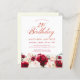 Rode rozen en blozende roze pioenen zijn genesteld in donkergroene bladeren op deze prachtige en unieke verjaardagsuitnodiging.