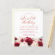 Rode rozen en blozende roze pioenen zijn genesteld in donkergroene bladeren op deze prachtige en unieke verjaardagsuitnodiging.
