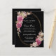 Roze pinda's en witte rozenknoppen creëer twee rustige Boho florale toedieningsvormen op een elegant, dun goudovaal lijst. Op de achterkant van de uitnodiging staat ook een kleine bloemetjesboeket. Alle tekst kan worden bewerkt.